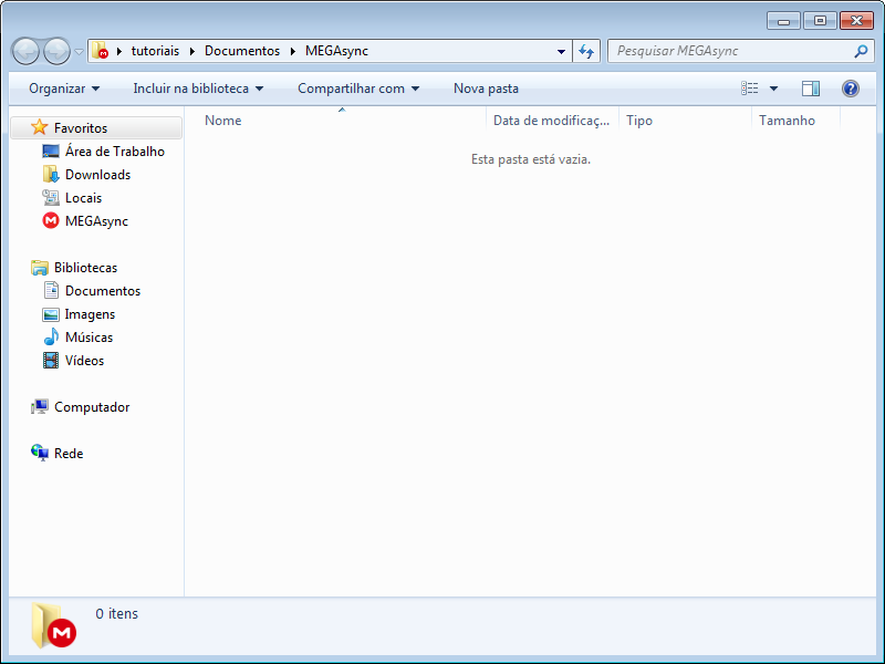 Clicando duas vezes sobre no ícone do Mega Sync na barra de tarefas ele vai abrir a pasta que esta Sincronizada com sua conta. O Mega Sync vai começa a fazer automaticamente o "download" dos arquivos da pasta do Mega para a pasta em seu computador. Enquanto isso você pode usar o computador normalmente.